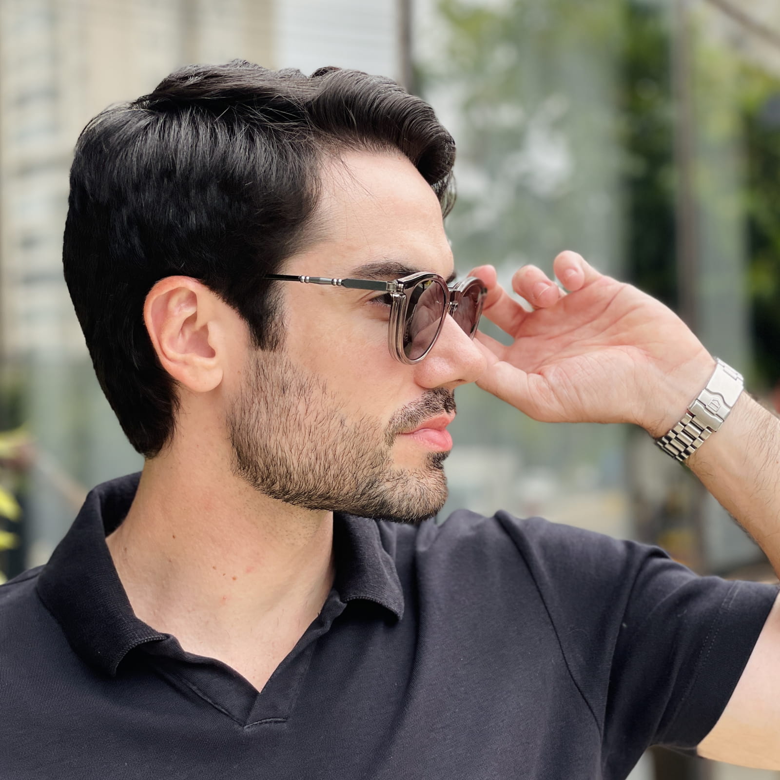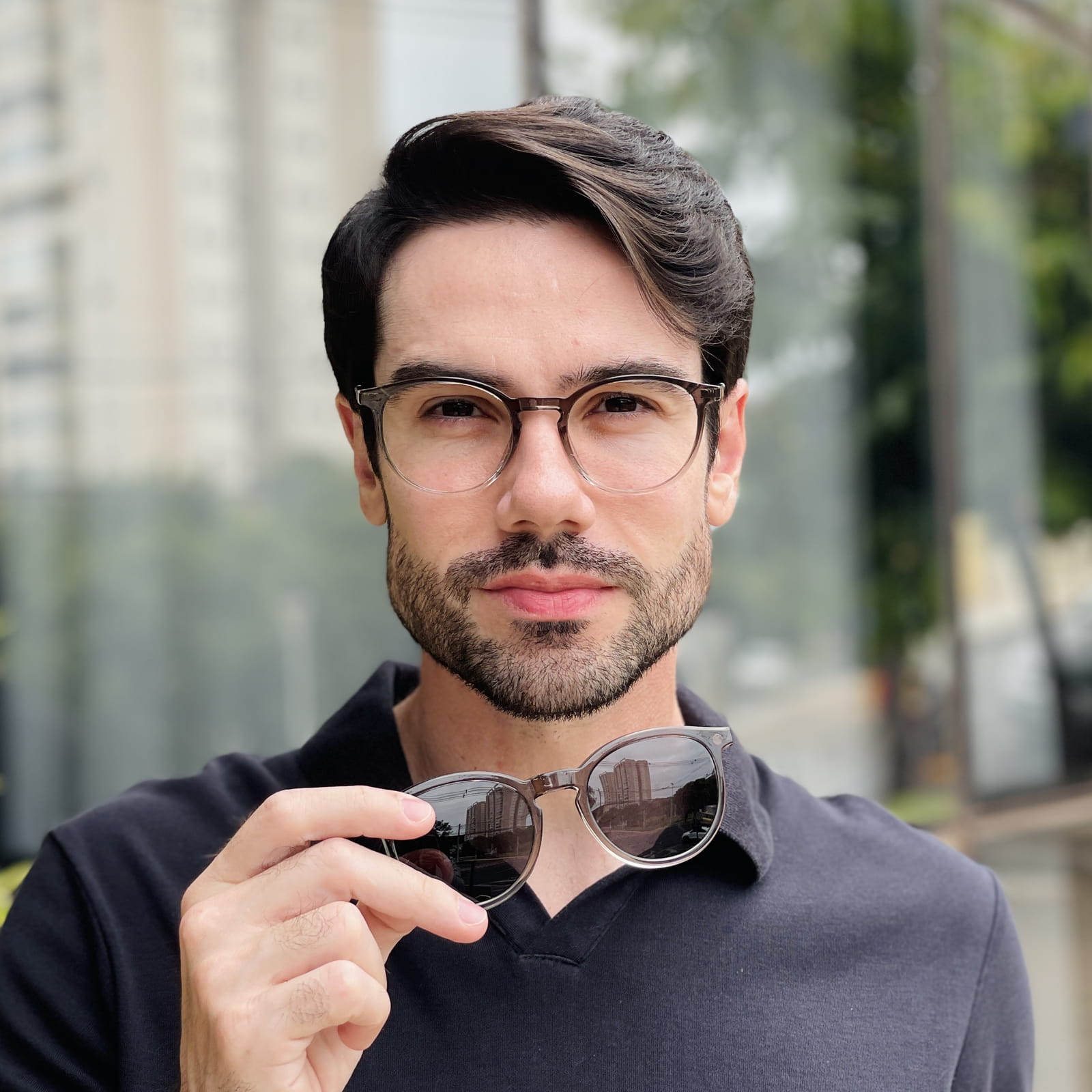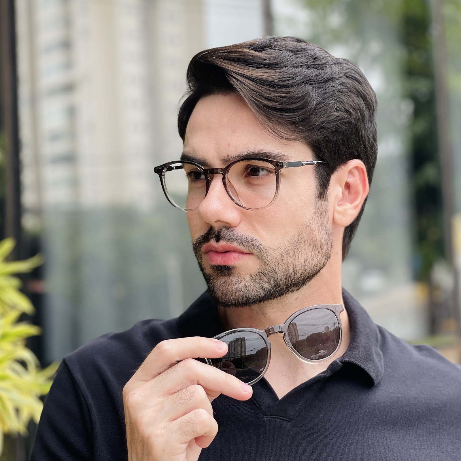 Óculos 2 em 1 Clip-On Masculino Redondo Cinza Mike