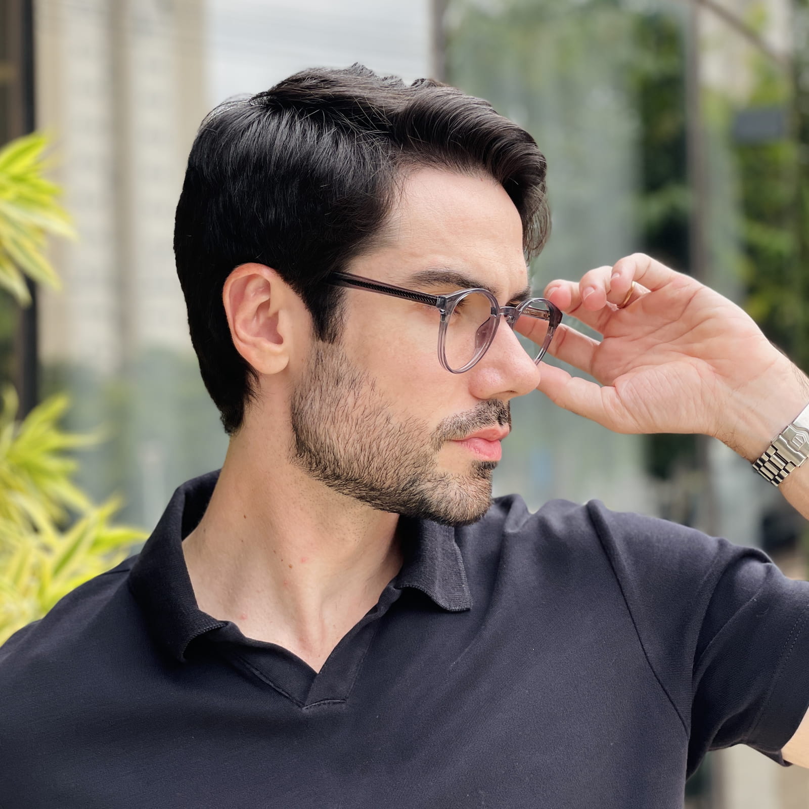 Óculos 2 em 1 Clip-On Masculino Redondo Cinza Paulo 2.0