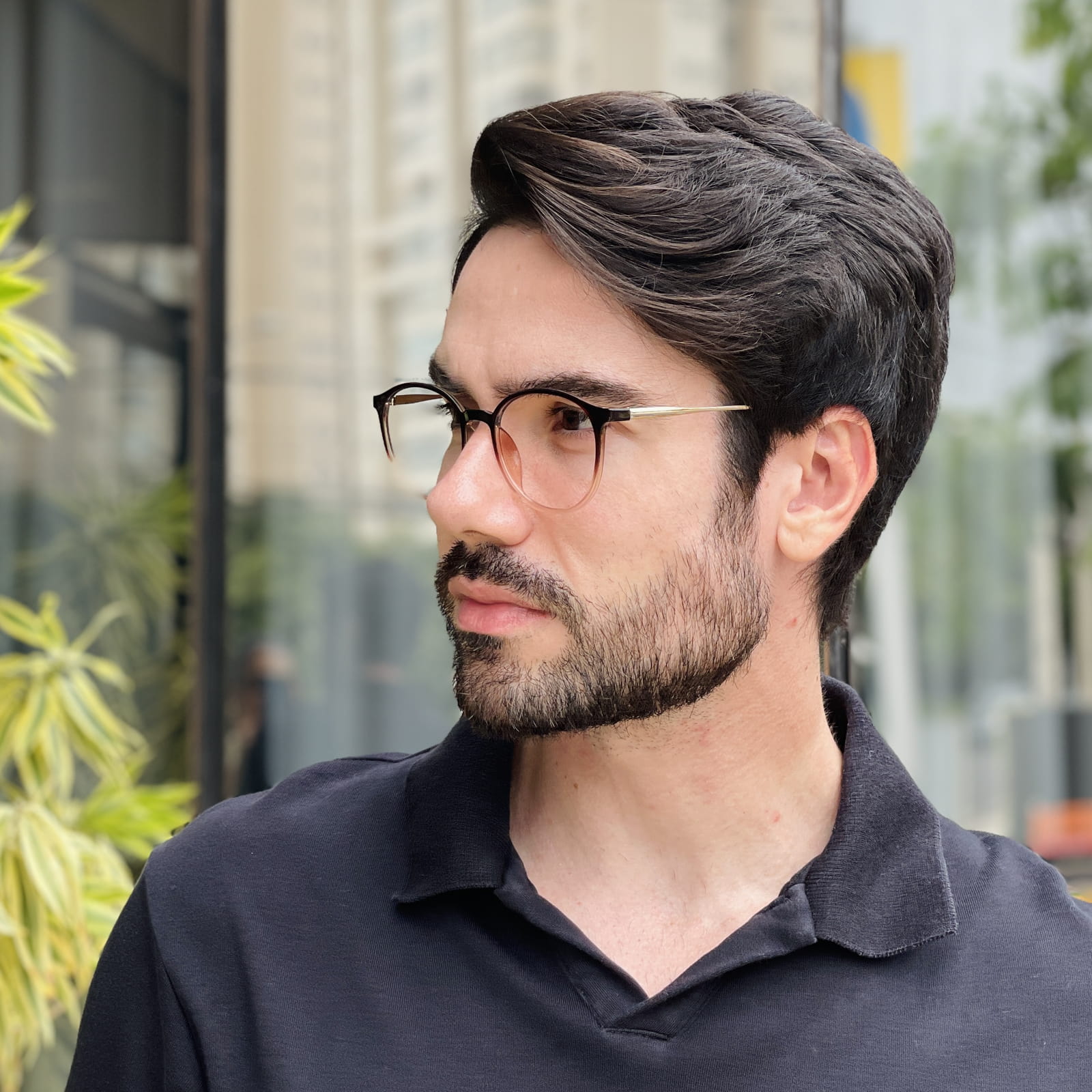 Geralmente, esses óculos ficam bem nos formatos de rosto quadrado e retangular.