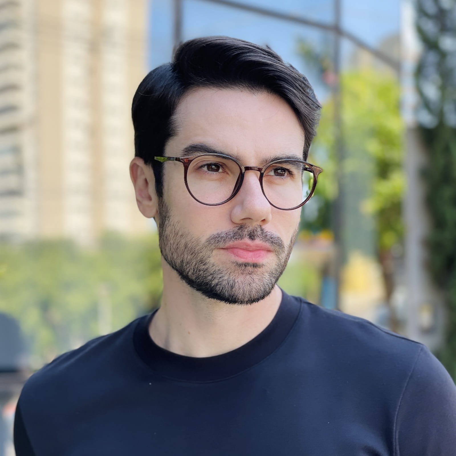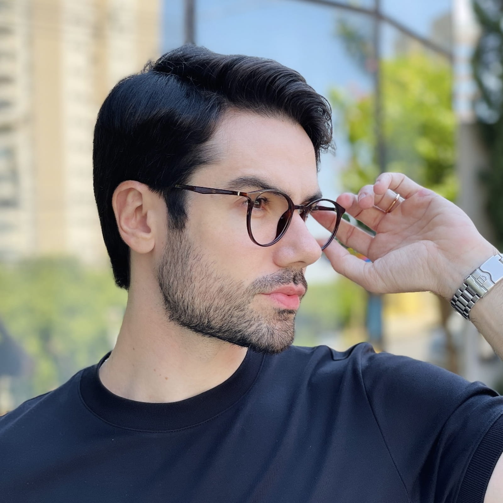 Isso porque, esses tipos de rosto tem linhas ou ângulos retos e a armação redonda ajuda a suavizar esses traços