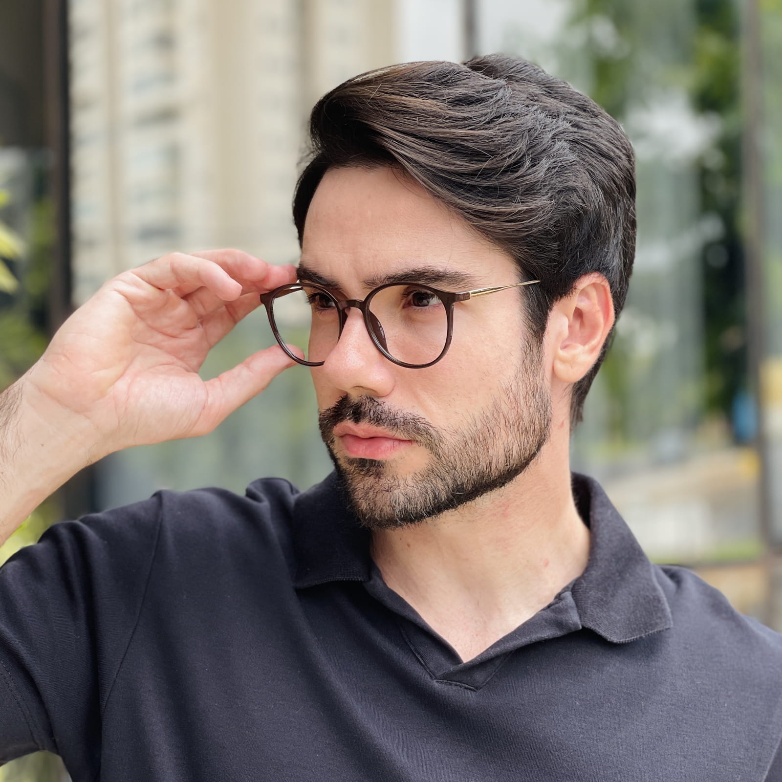 Geralmente, esses óculos ficam bem nos formatos de rosto quadrado e retangular.