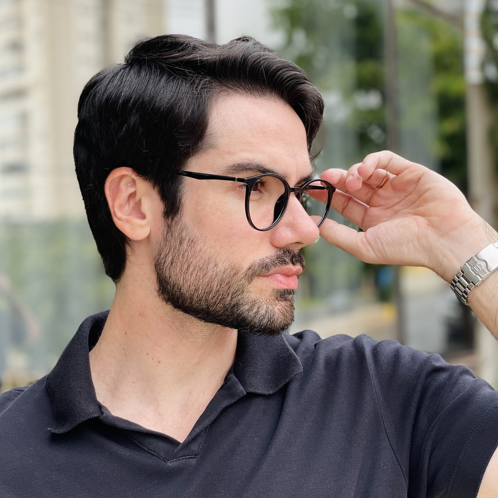 As armações para óculos de grau redondos também podem ser usados por pessoas com formatos de rosto redondos e ovais, por exemplo.