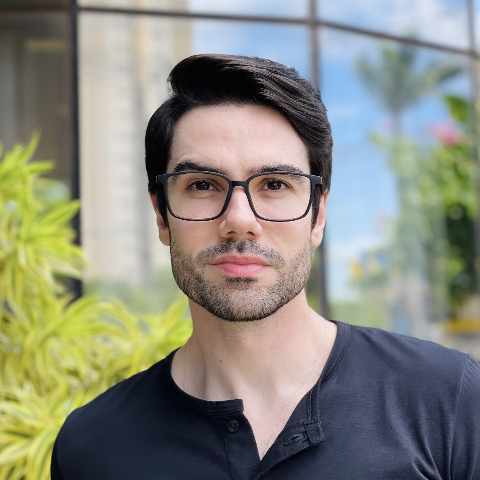 As pessoas com formatos de rosto triangulares e quadrados podem usar armações para óculos de grau retangulares, por exemplo.