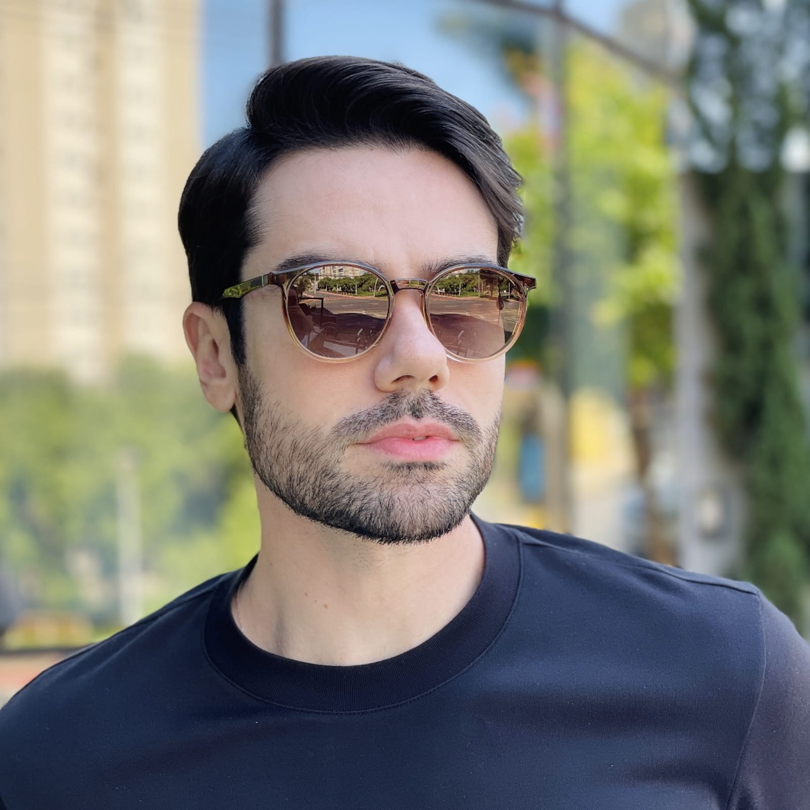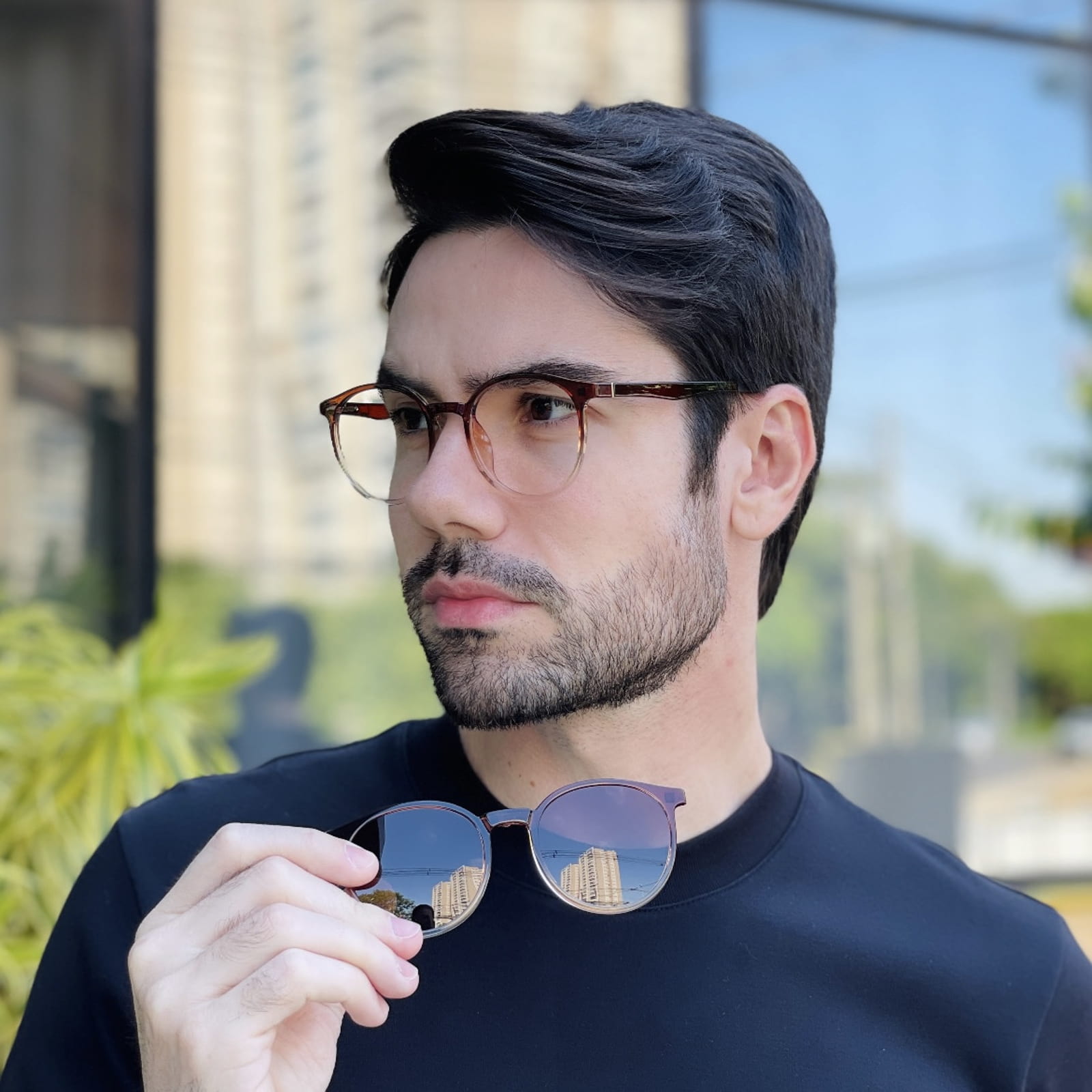 - Modelo: Óculos 2 em 1 Clip-On Redondo Marrom Degradê João