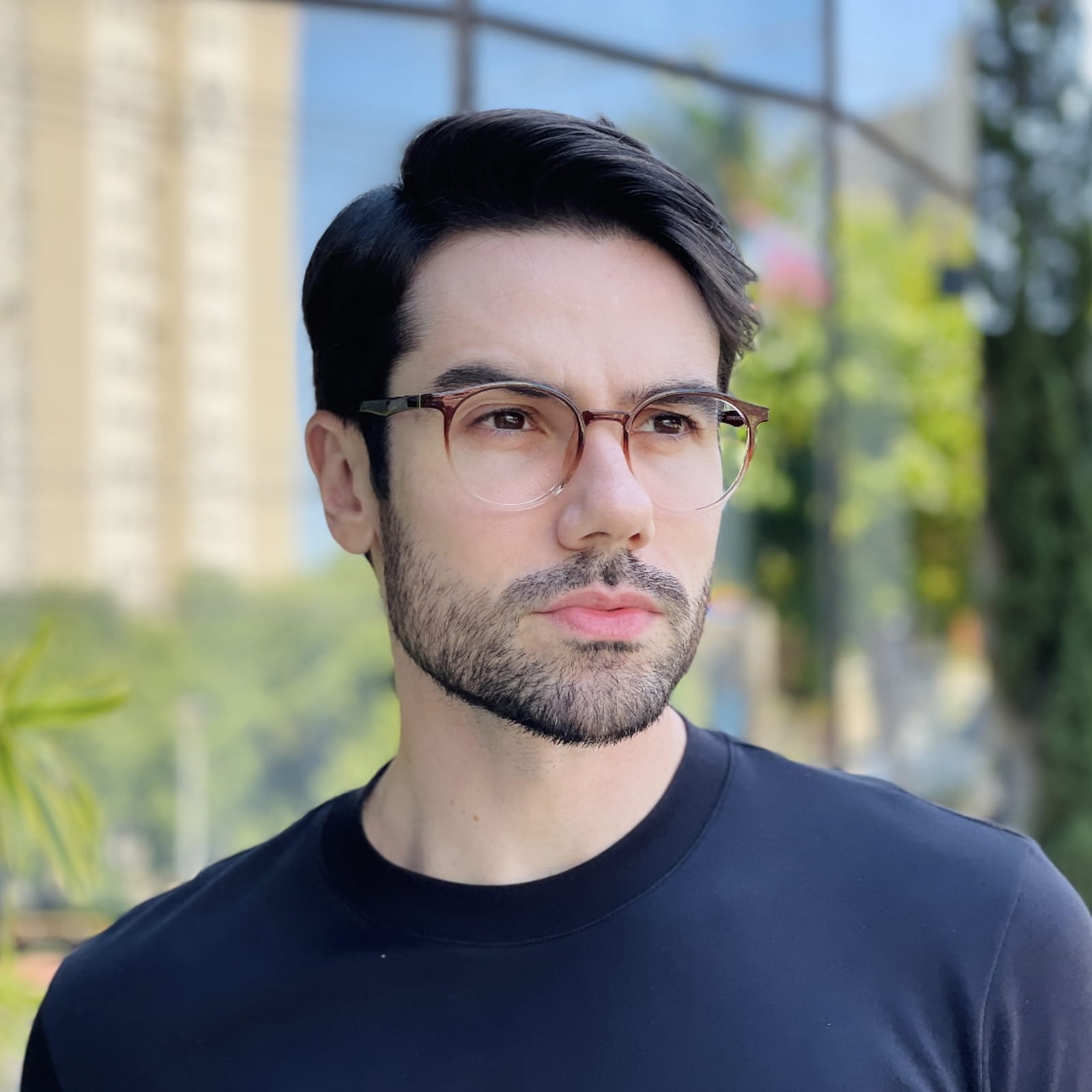 Isso porque, esses tipos de rosto tem linhas ou ângulos retos e a armação redonda ajuda a suavizar esses traços