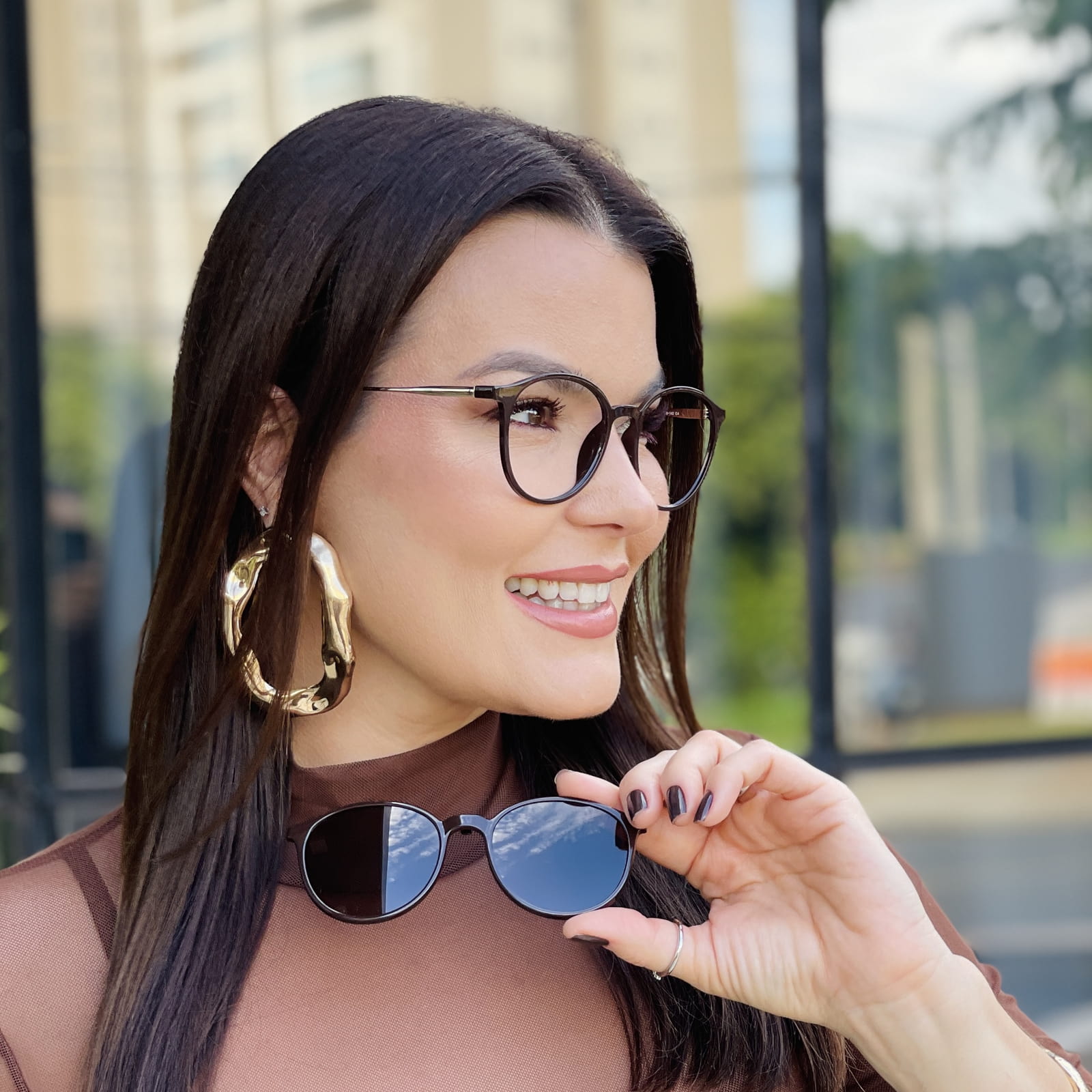 - Modelo: Óculos 2 em 1 Clip-On Redondo Marrom Paola 3.0