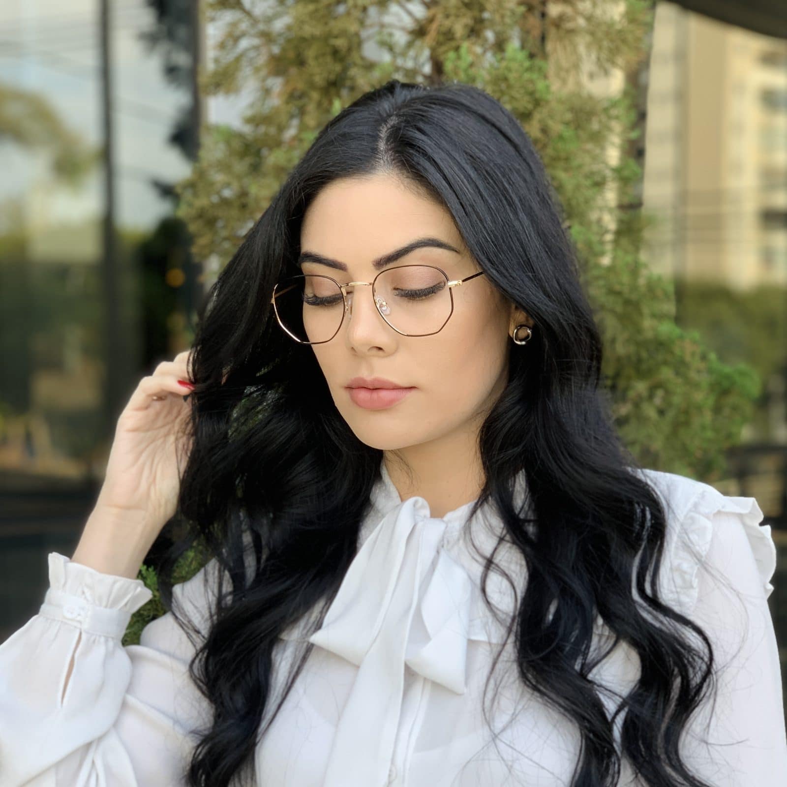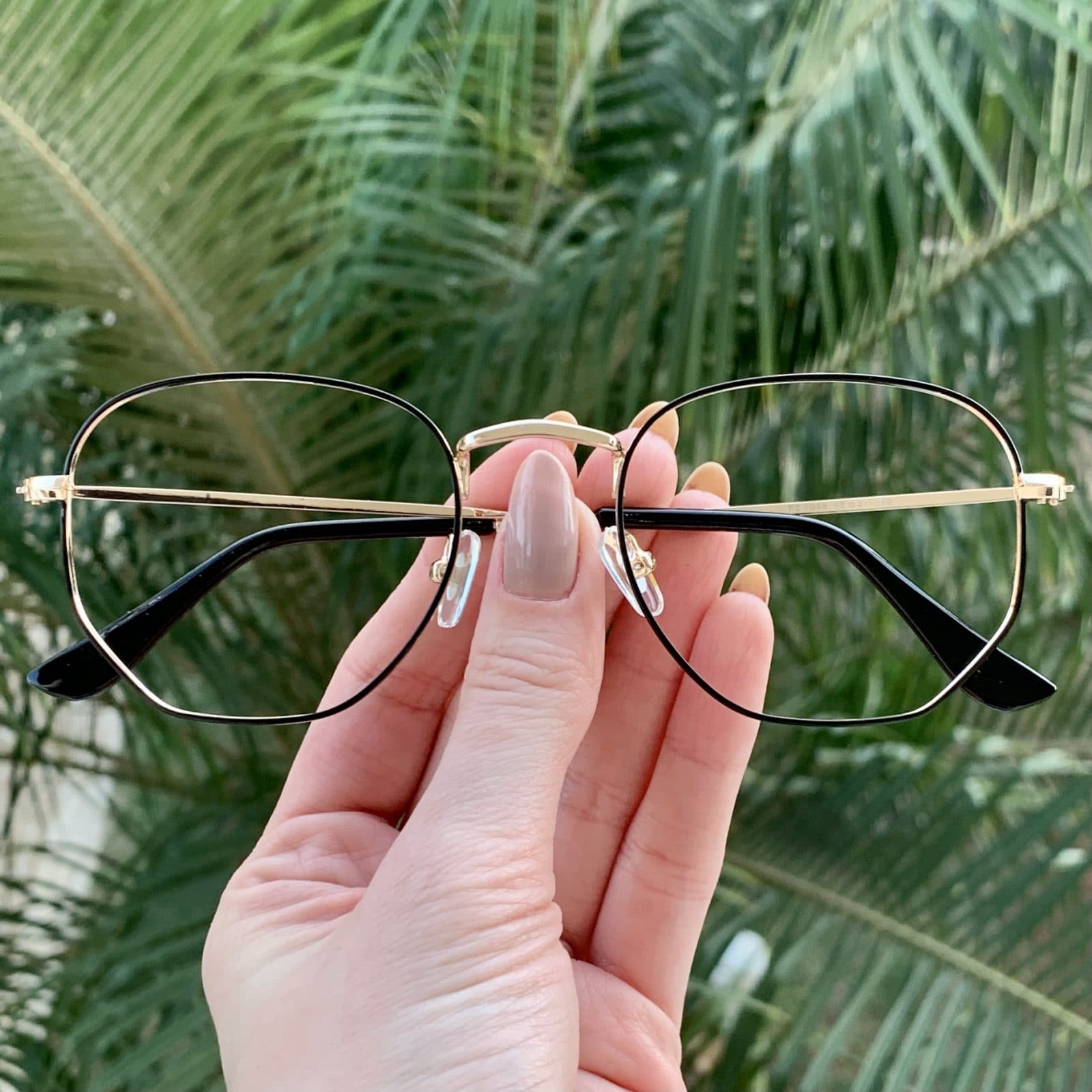 - Modelo: Óculos de Grau Hexagonal Dourado e Preto Lali