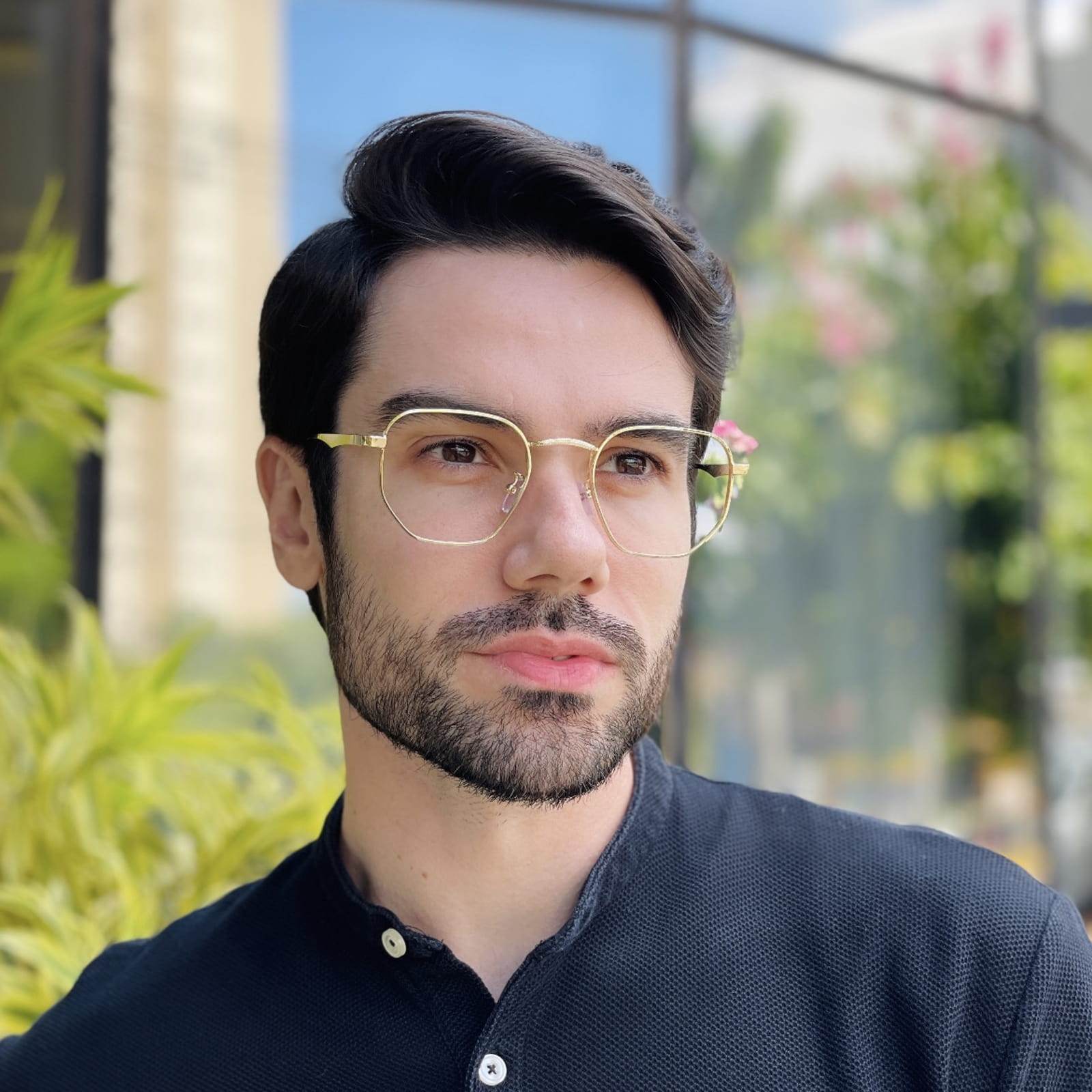 Óculos de Grau Masculino Hexagonal Dourado Geovani 2.0
