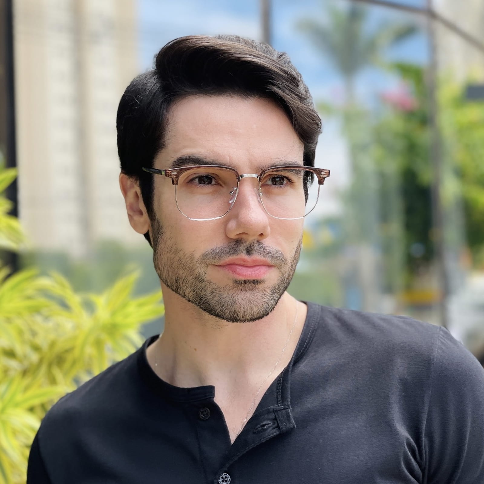 Geralmente, esses óculos ficam bem nos formatos de rosto redondo e oval.