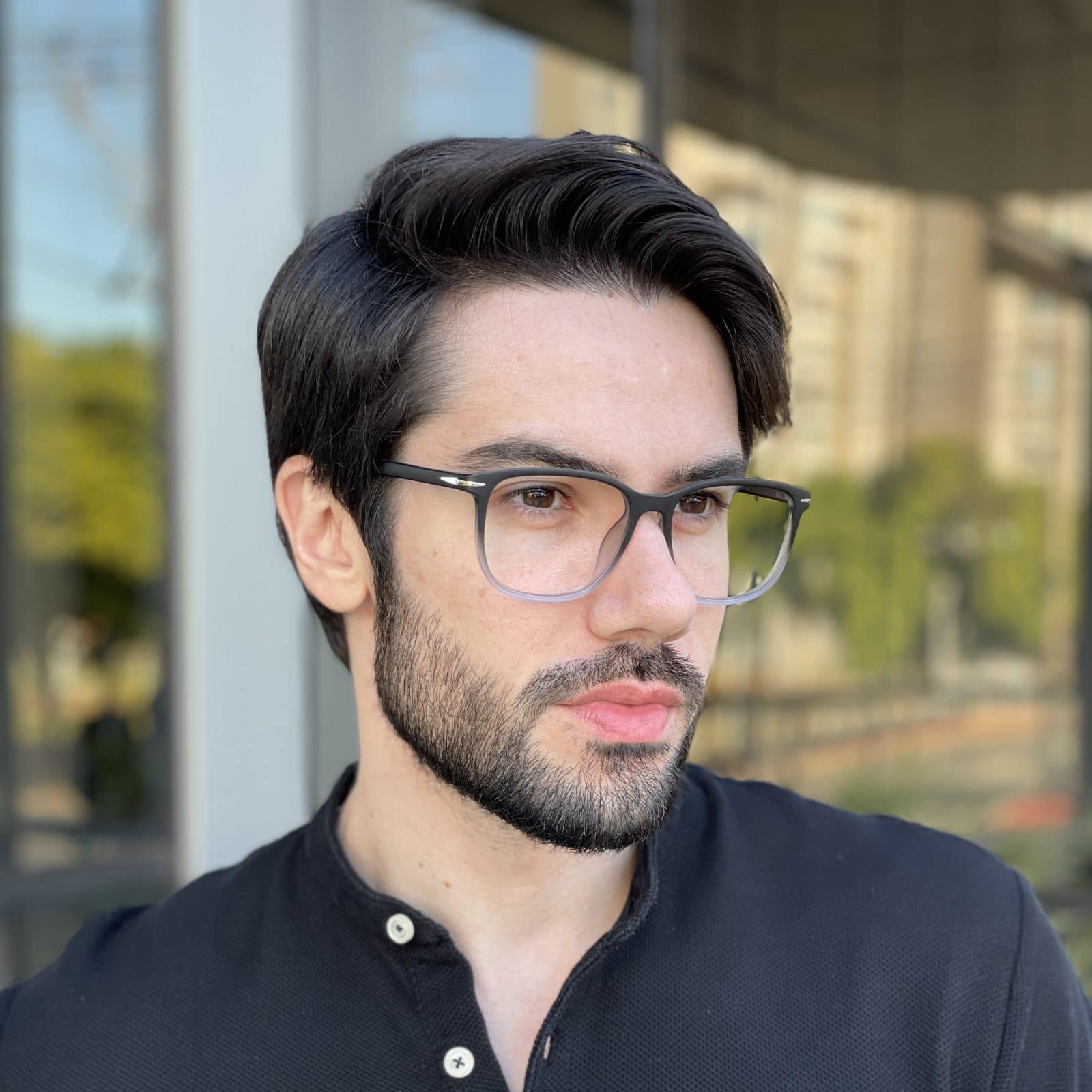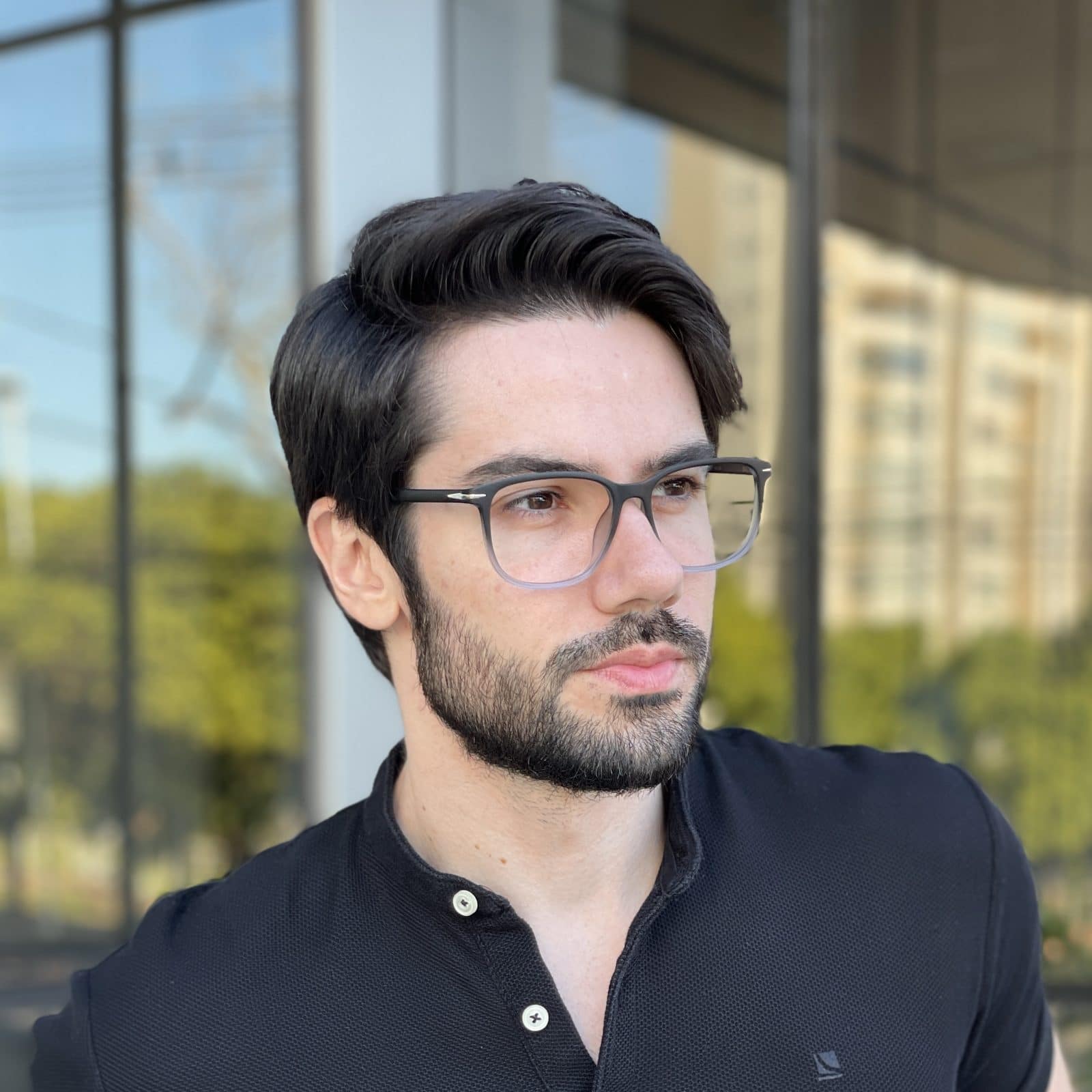 Óculos de Grau Masculino Quadrado Preto Transparente Vicente, perfeito em cada detalhe!