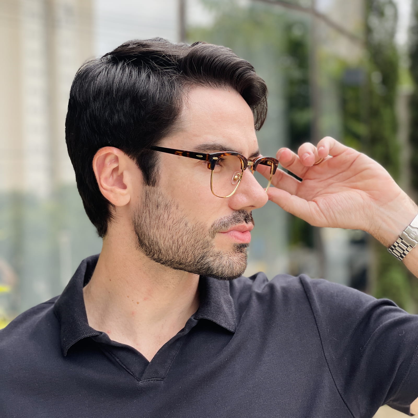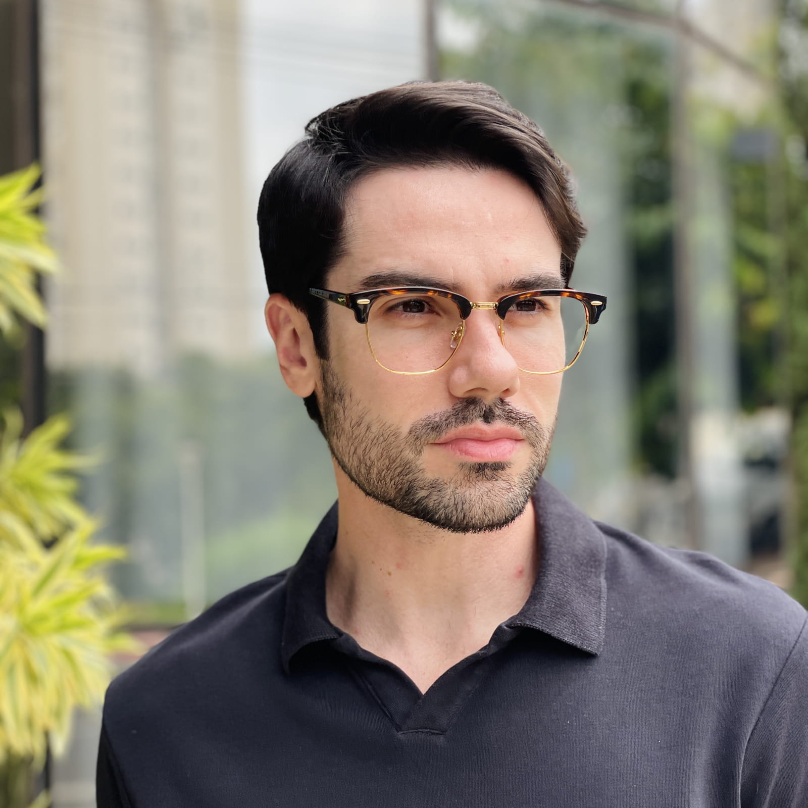 Geralmente, os óculos de grau quadrado masculino são indicados para rostos com traços mais suaves ou arredondados.