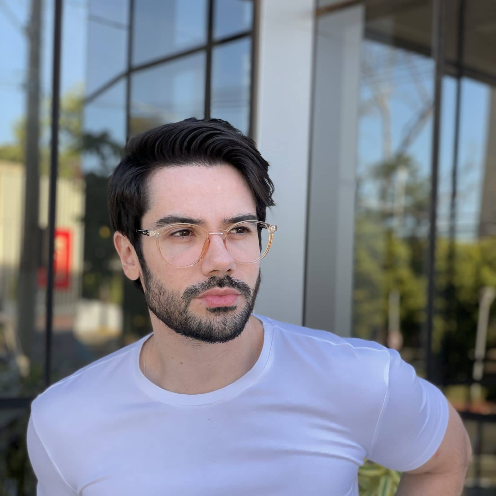 Óculos de Grau Masculino Redondo Champanhe Léo