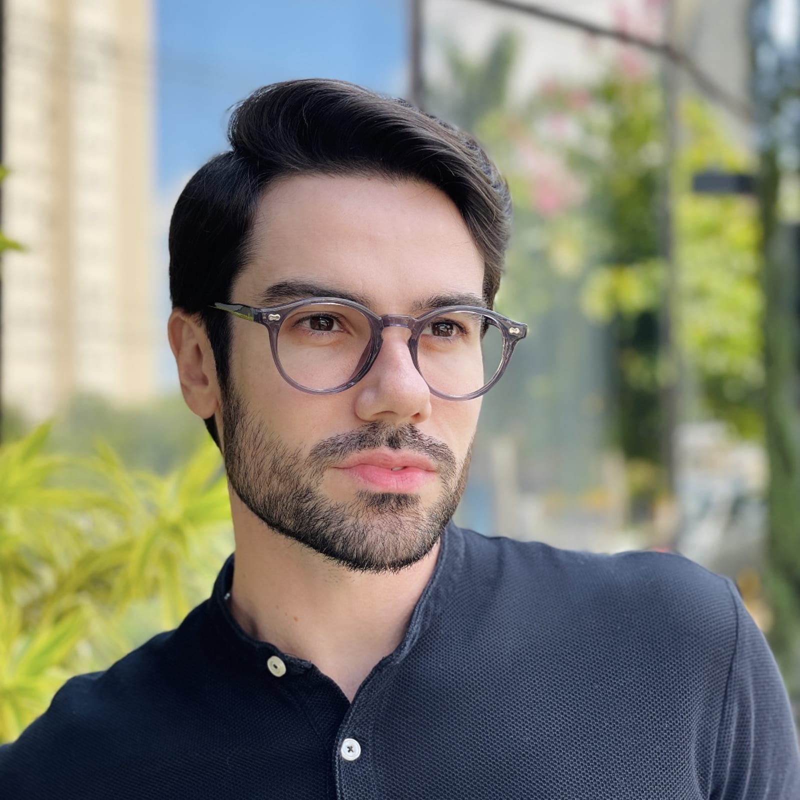 Óculos de Grau Masculino Redondo Cinza Elias 2.0