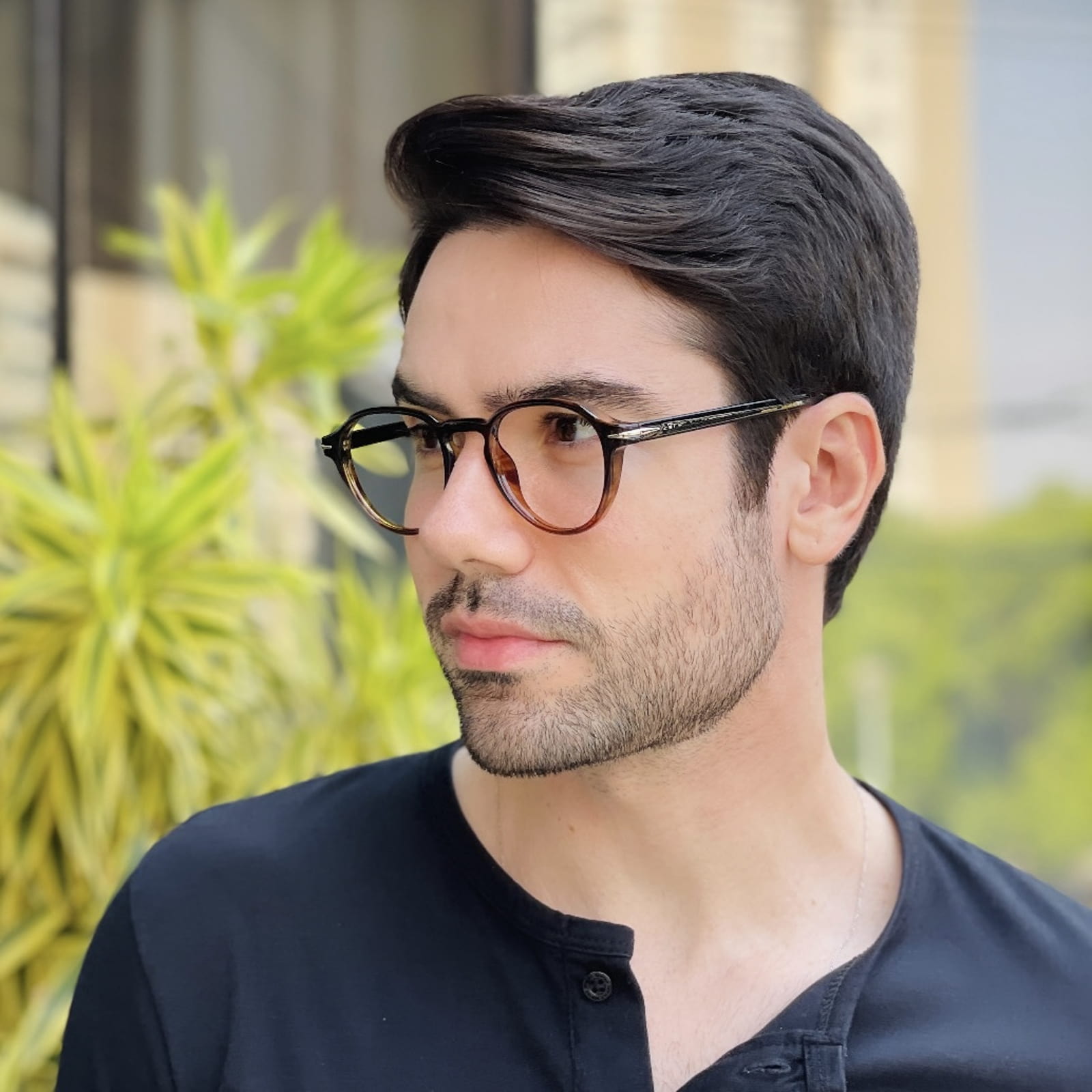- Modelo: Óculos de Grau Masculino Redondo Marrom Degradê Harry 2.0