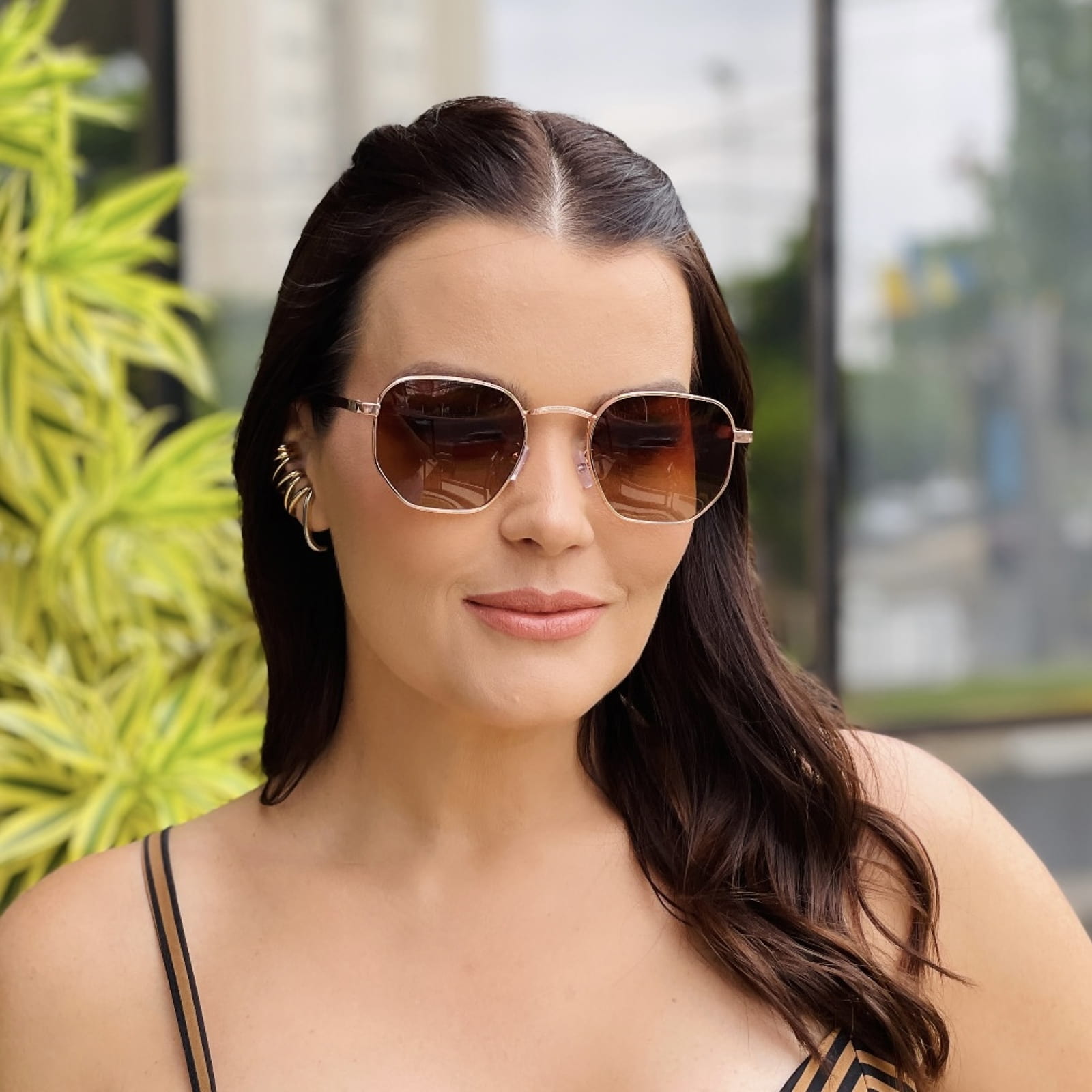 - Modelo: Óculos de Sol Feminino Hexagonal Rosé Karen