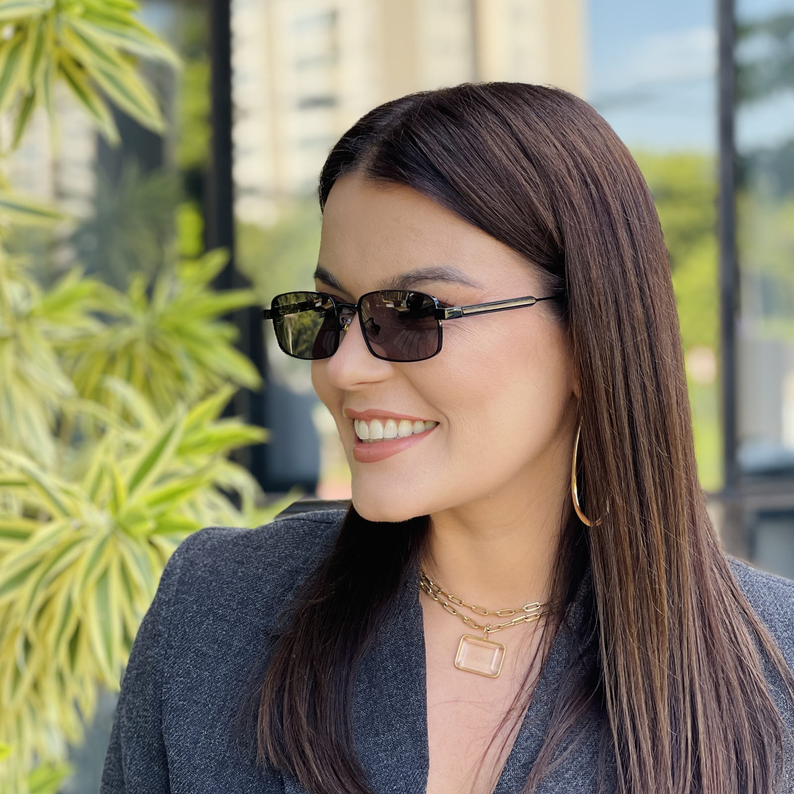 Os óculos de sol feminino retangular em metal são feitos de um material leve e elegante, que se destaca pela sofisticação em cada detalhe.