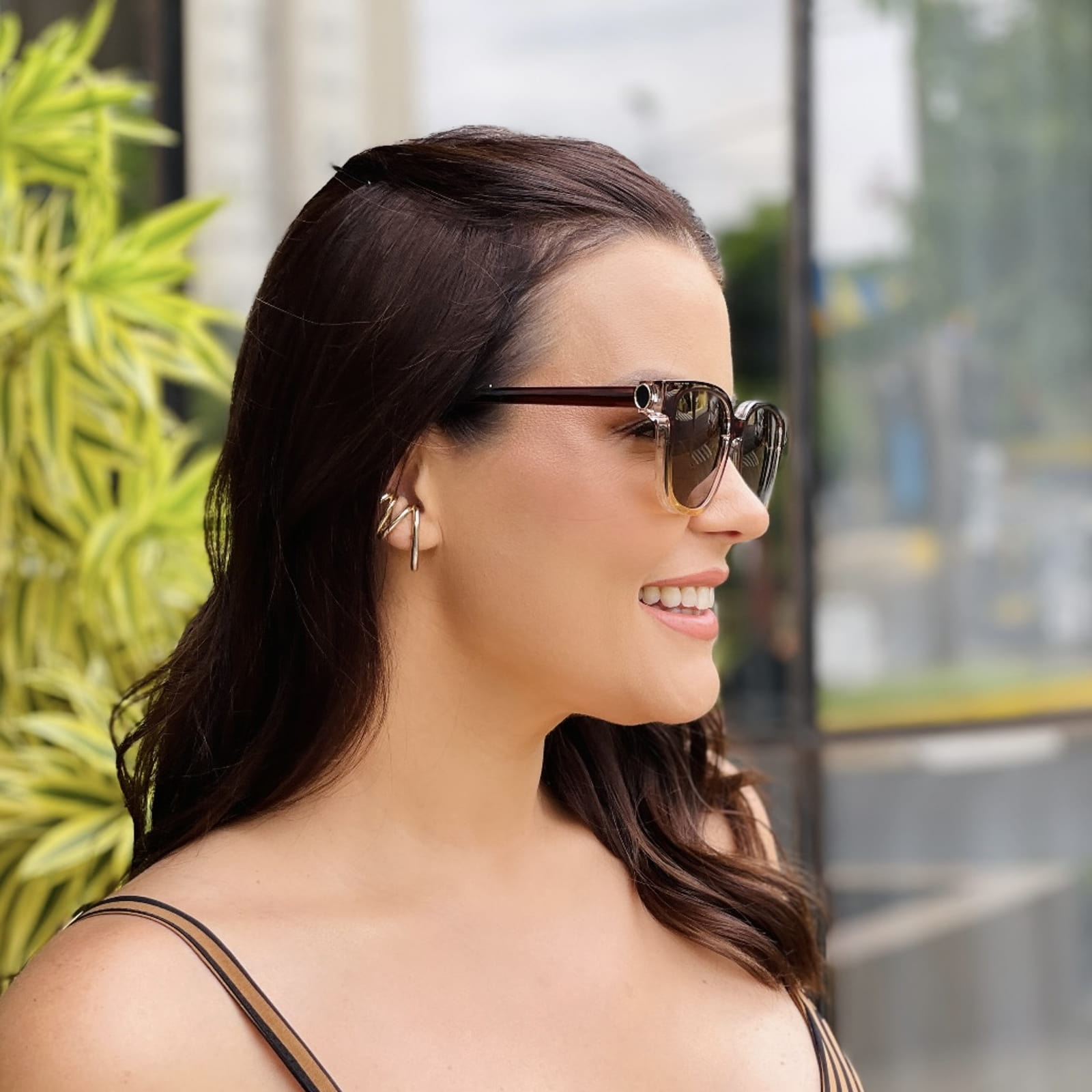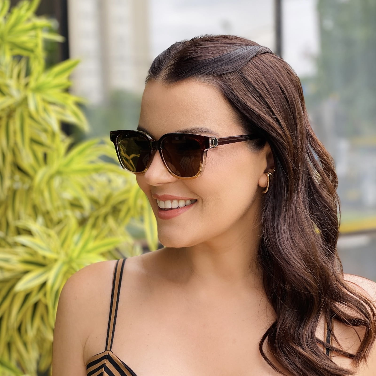 - Modelo: Óculos de Sol Feminino Quadrado Marrom Degradê Nubia