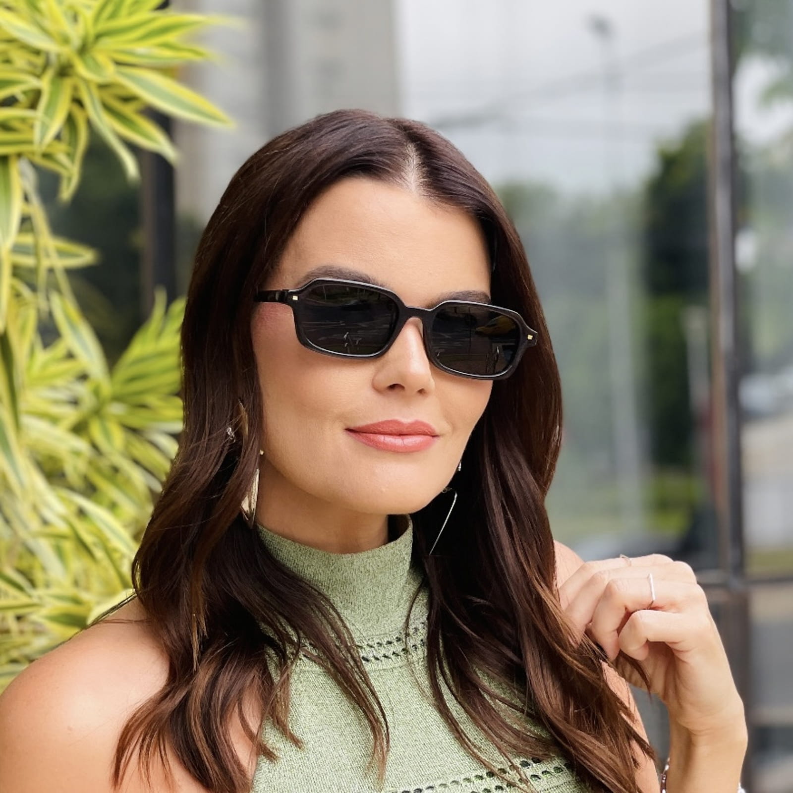 - Modelo: Óculos de Sol Feminino Retangular Marrom Thássia