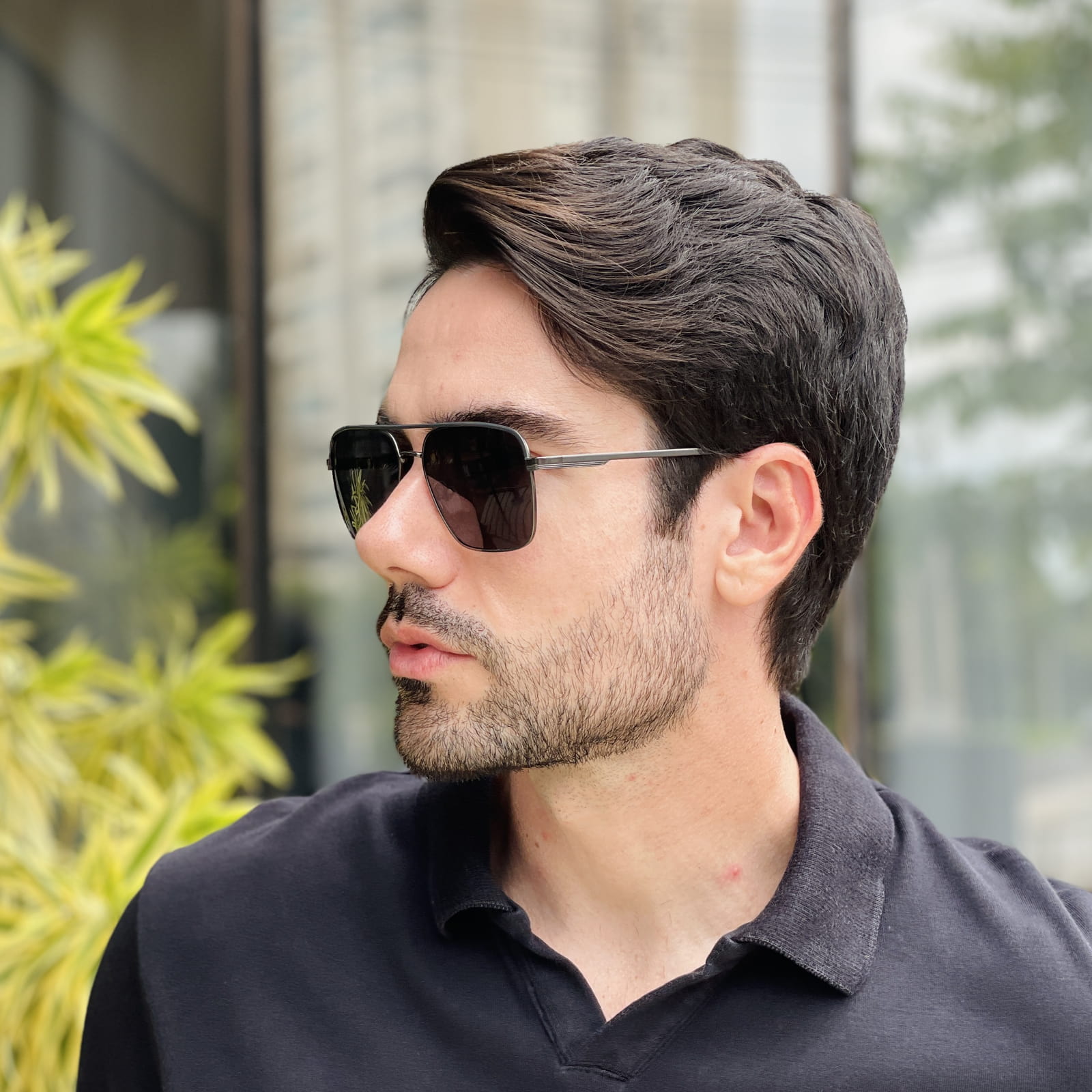 Geralmente, os rostos mais quadrados ou ovais combinam perfeitamente com o modelo aviador.