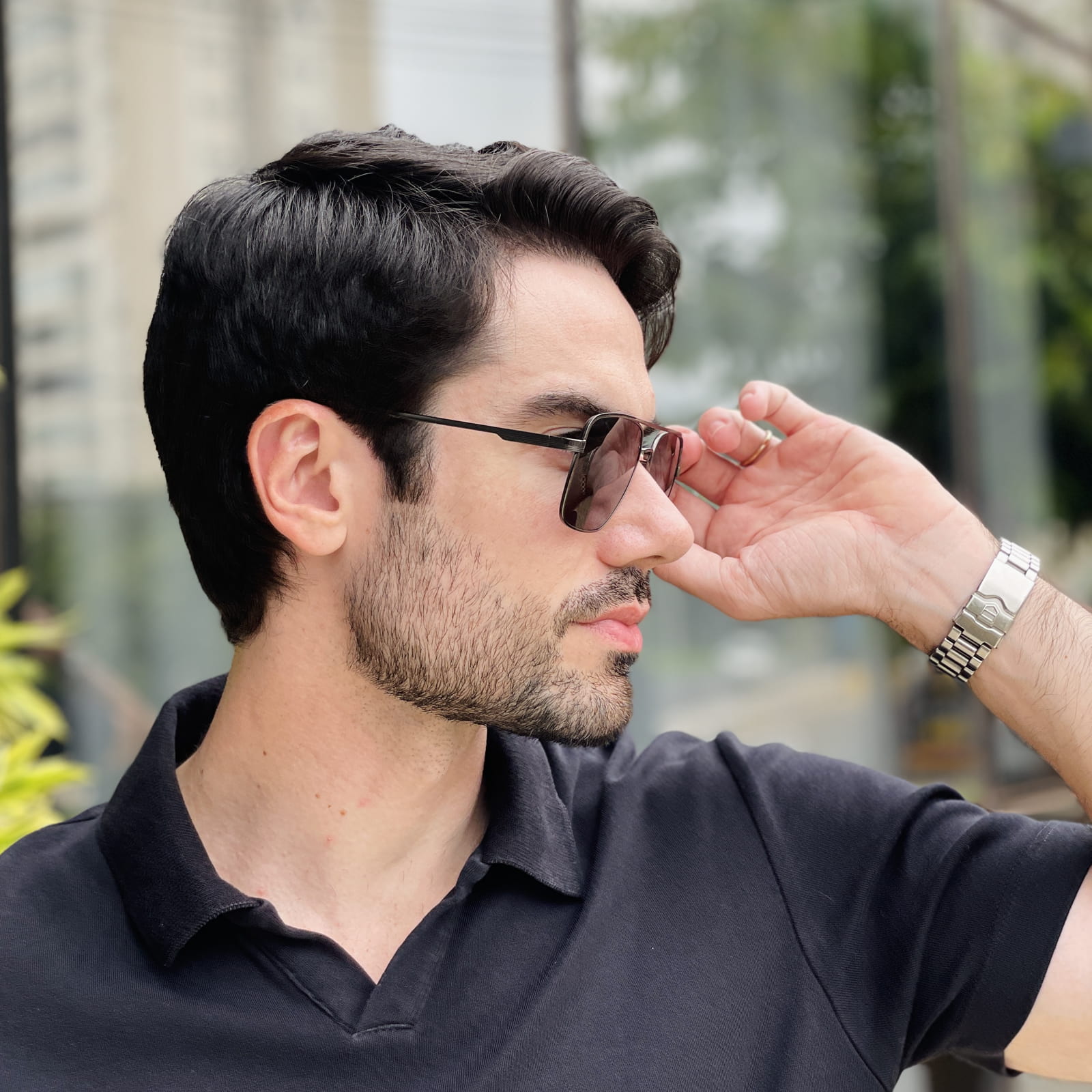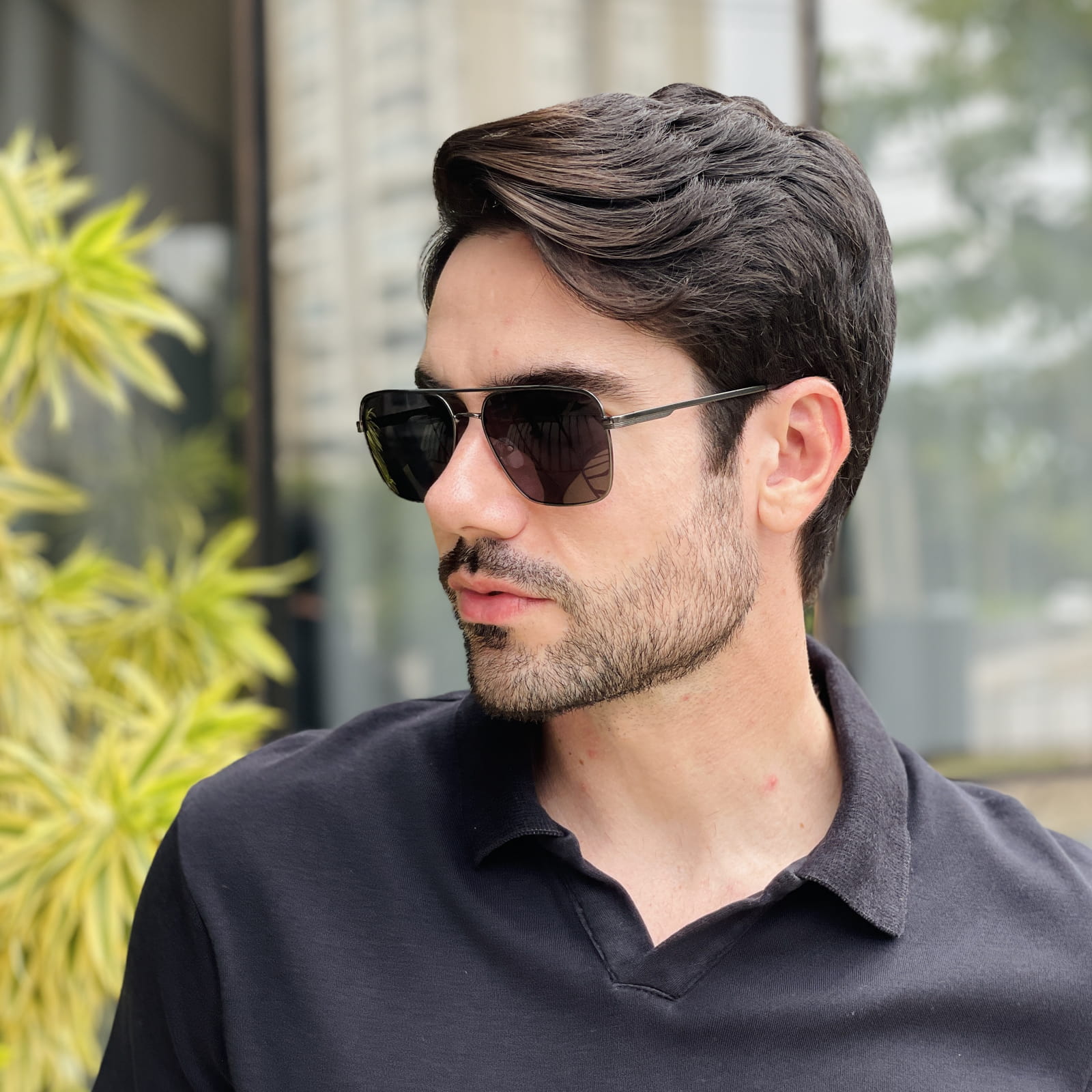 Geralmente, os rostos mais quadrados ou ovais combinam perfeitamente com o modelo aviador.