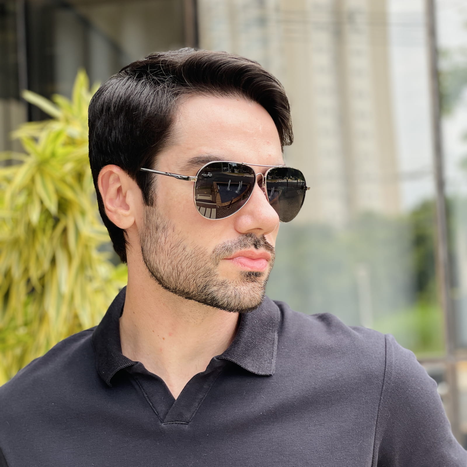 Geralmente, os rostos mais quadrados ou ovais combinam perfeitamente com o modelo aviador.