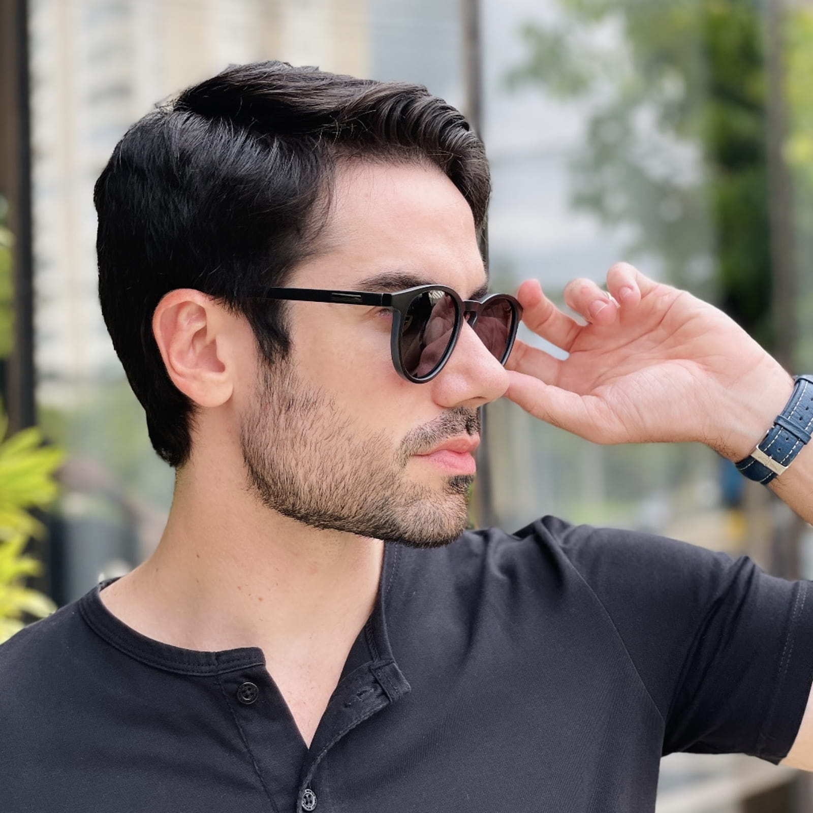 Óculos de Sol Masculino Redondo Preto e Cinza Mário