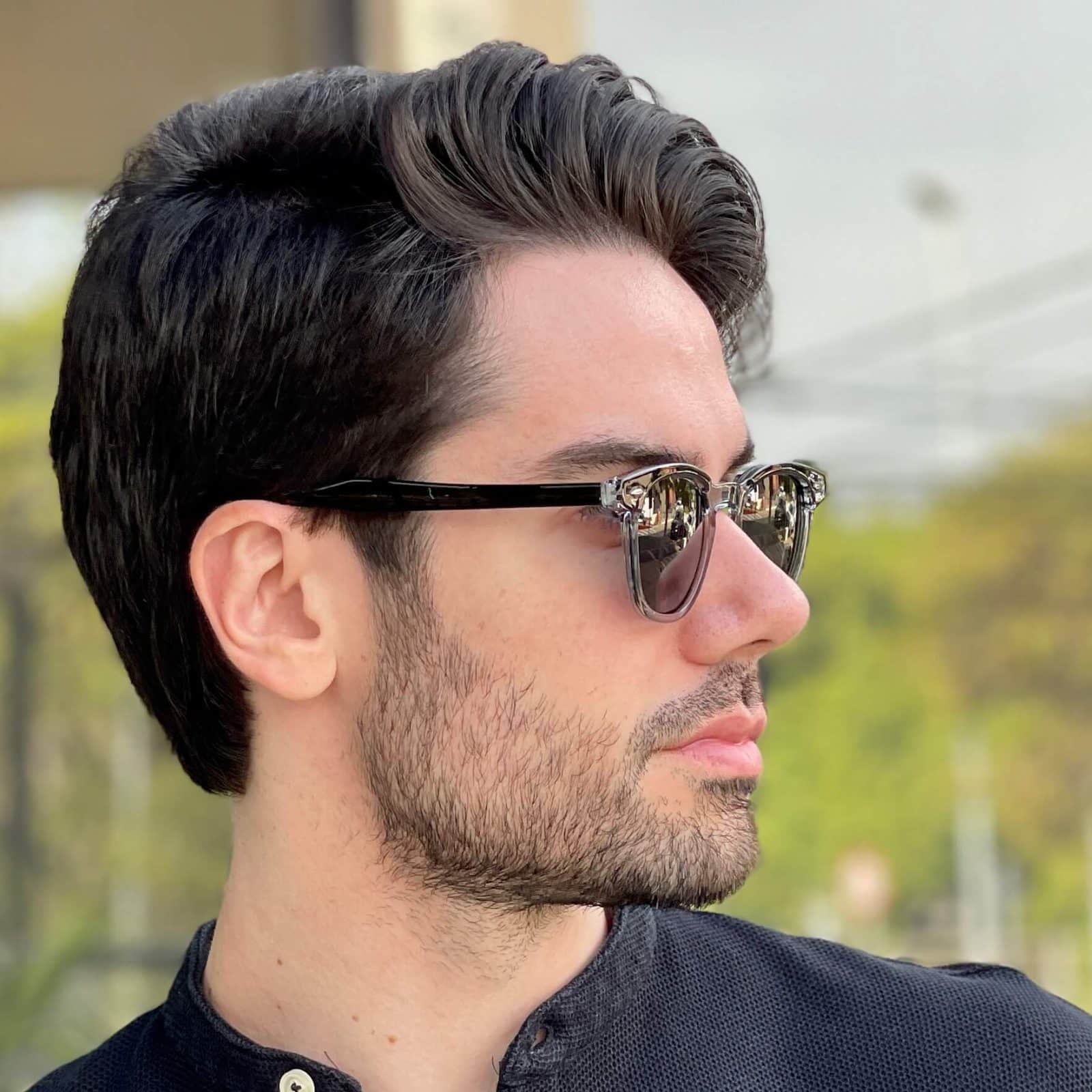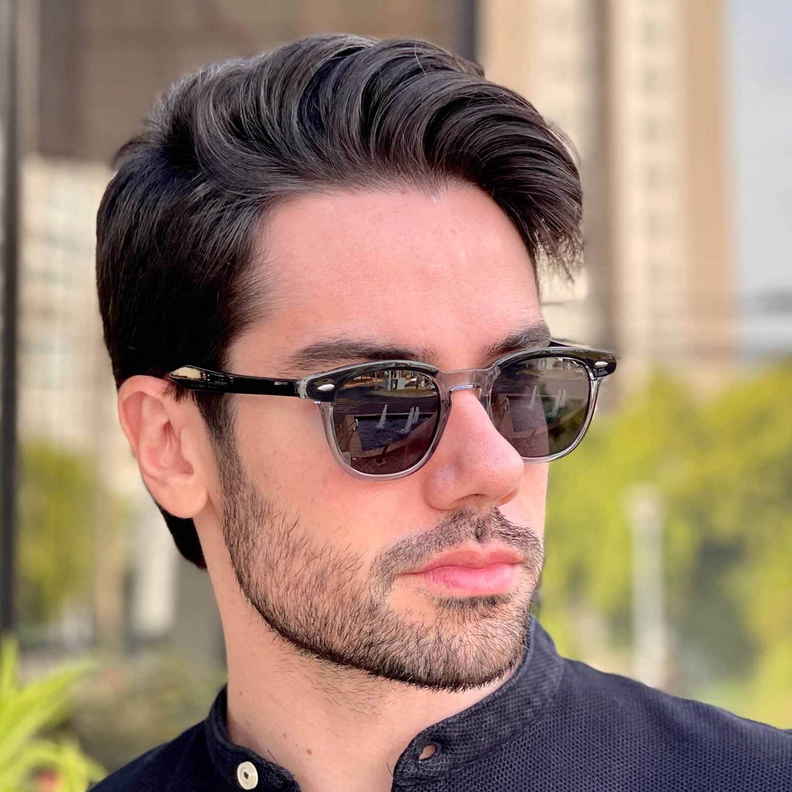 Óculos de Sol Masculino Redondo Preto Transparente Ivan