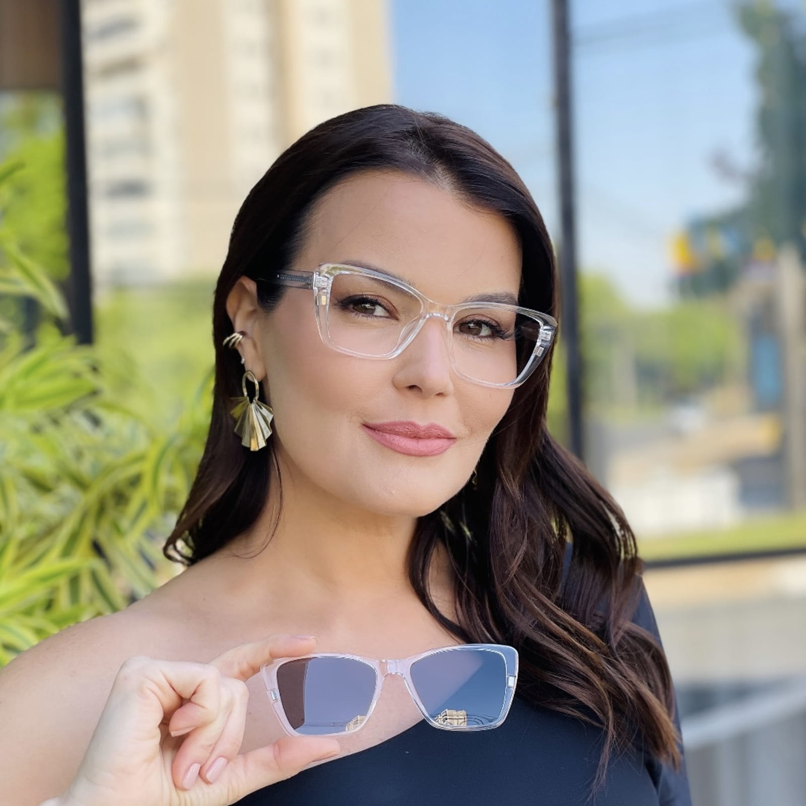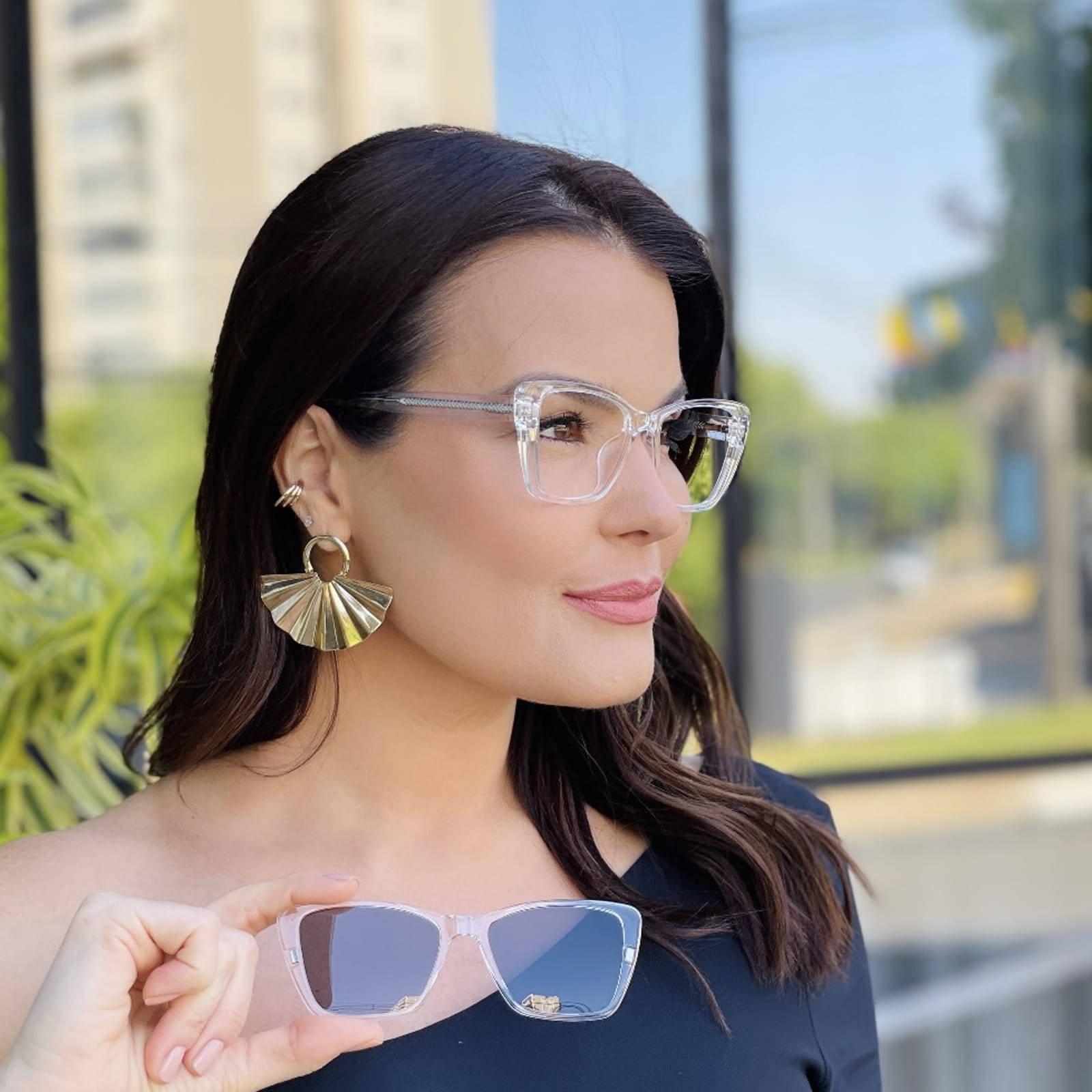 Óculos Feminino 2 em 1 Clip-On Gatinho Transparente Pamela