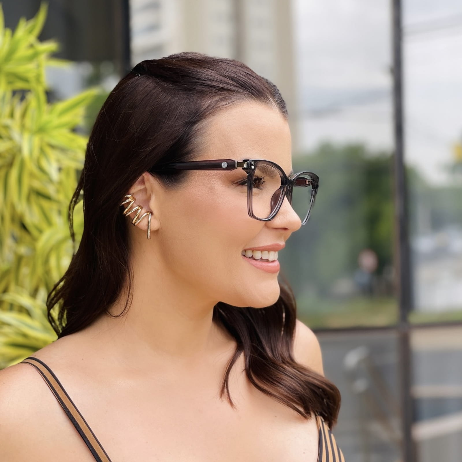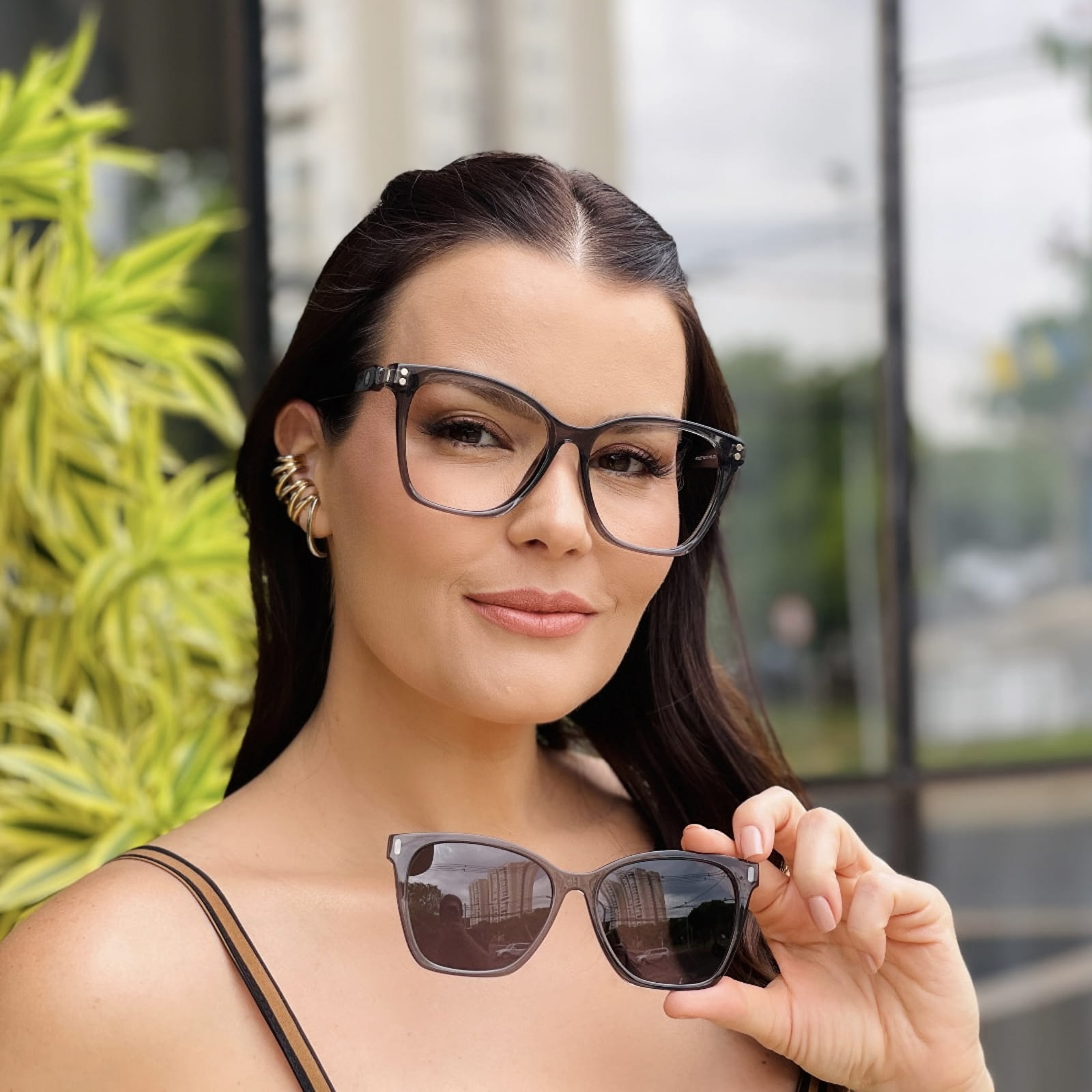 - Modelo: Óculos Feminino 2 em 1 Clip-On Quadrado Cinza Luma
