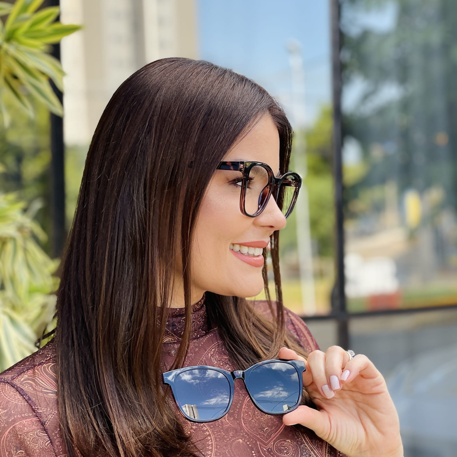 Os óculos clip on quadrado feminino são feitos de um material resistente e leve ideal para uso diário.